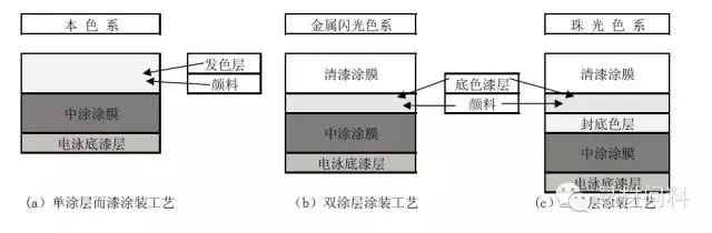 本色而漆和閃光色面漆涂裝的工藝方法比較: